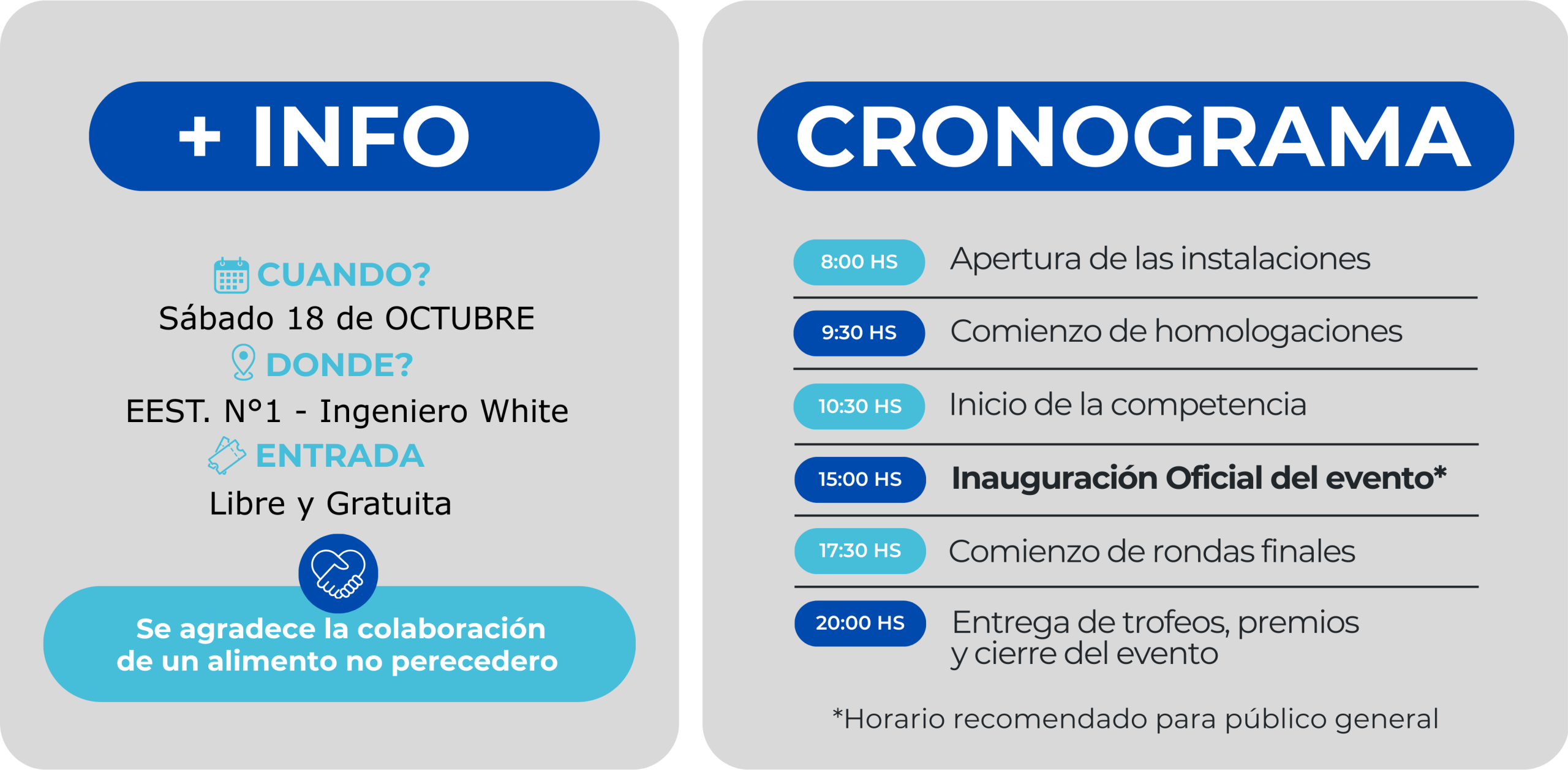 El evento se desarrollara en la Escuela de Educación Secundaria Técnica N° 1 «Crucero A.R.A General Belgrano» ubicada en Sargento Cabral y Tarija en Ing. White del Partido de Bahía Blanca.
